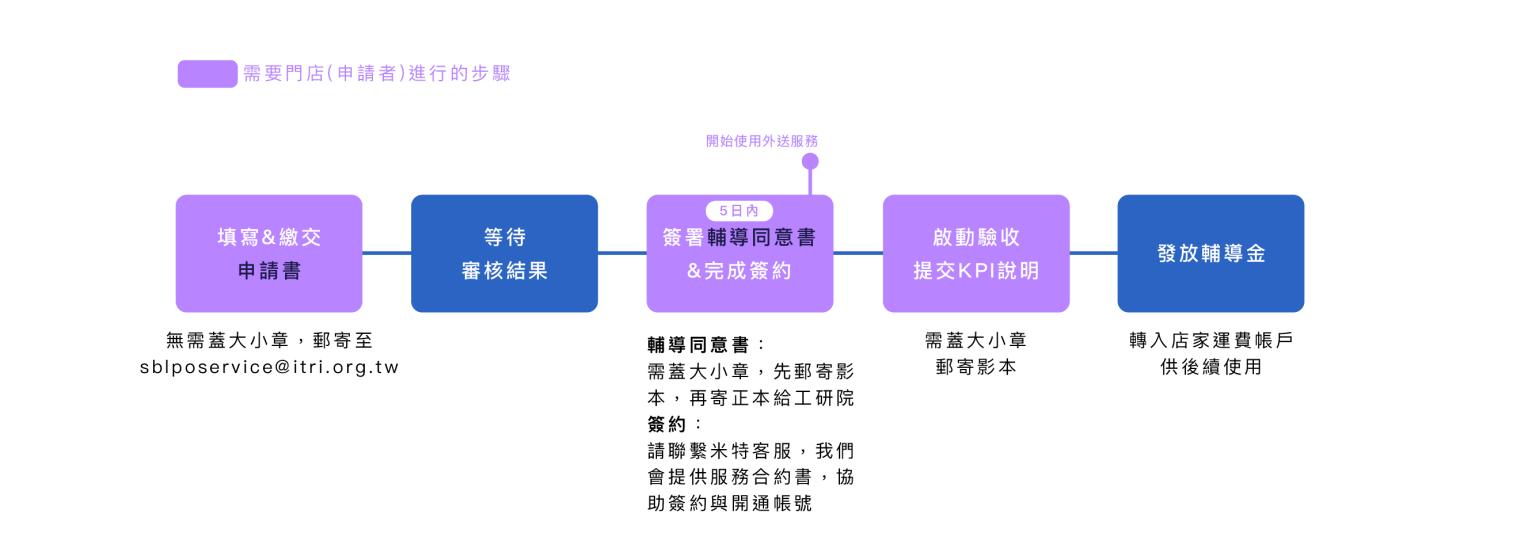 - 輔導企業:發展外送服務的餐飲、零售、服務類門店